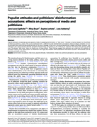 news outlet and perceived accuracy of the news message, while trust in the accusing politician is largely unaffected. However, only individuals with strong populist attitudes generalize disinformation accusations to the media as an institution and reduce their general media trust. The phrase “fake news” does not amplify any of these effects. These findings suggest that politicians can undermine the credibility of journalism without much repercussion—a mechanism that might also threaten other authoritative information sources in democracies such as scientists and health authorities." (Abstract)