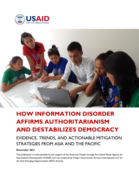 "Section 2 of this report provides an overview of information disorder in Asia and the Pacific and describes how it destabilizes democracy and strengthens authoritarianism. After situating information disorder in Asia and the Pacific in its historical context, Section 2 examines which actors 1) spre