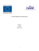 ns, especially physical assaults, as part of their endeavors to keep the field confined to their narration about their practices and policies towards the Palestinian people in Gaza Strip and West Bank, including the occupied city of Jerusalem. In addition to the violations of the Israeli occupation forces and authorities, the social media companies/networks started playing a major role in such violations. They represent a portal for the suppression of media freedoms and the fight against Palestinian content and narration, according to the vision and standards of the Israeli occupation state that reached understandings in this regard with Facebook Company. This resulted in closing about two hundred news sites, in this year, and a page belonging to Palestinian journalist claiming to «violate the standards of publishing». At the Palestinian level, particularly in the West Bank, the positive atmosphere and the satisfaction that accompanied the announcement of the new Palestinian government headed by Dr. Mohammad Ishtayya, since its inauguration in May 2019, and its commitment to protecting media freedoms, soon disappeared, after several months of tangible decline in the number of violations documented in the West Bank, reaching to almost zero. The decision of Ramallah Magistrate’s Court which ordered the closure of 49 websites according to the Cybercrime Law represents a severe setback to media freedoms. As to Gaza Strip, basically governed by Hamas, the situation there has witnessed an evident increase in the number of violations against media freedoms compared to the previous years, not to mention the lack of concern of the governing official authorities in the Strip in this regard." (Introduction)