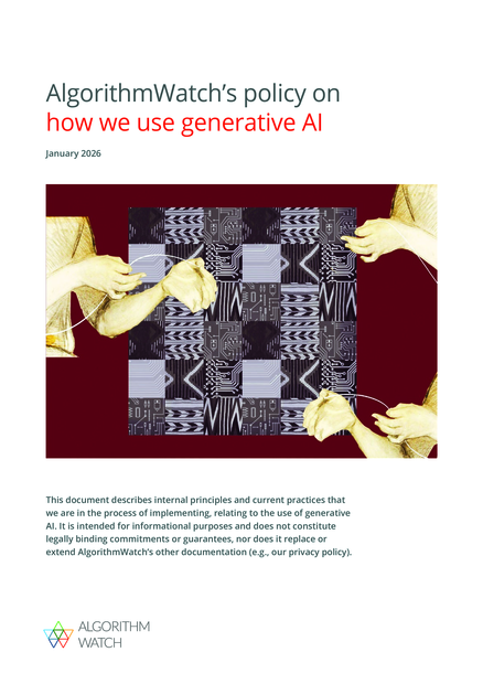 "Whether you use ChatGPT, Claude or Gemini, Copilot or Perplexity – generative AI poses massive problems: many results are inaccurate and politically problematic, the systems’ energy and water consumption is enormous. At the same time, they have become an integral part of everyday life. AlgorithmWatch has developed guidelines to help use generative AI responsibly. As an organization, we fight against the irresponsible and unaccountable development, deployment, and use of digital technologies. But such technologies can also, when used responsibly, aid us in this mission. Generative AI is a particularly important example, which raises questions of how we act responsibly and balance benefits against risks.