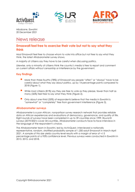 Afrobarometer; ActivQuest (2021), 3 pp.