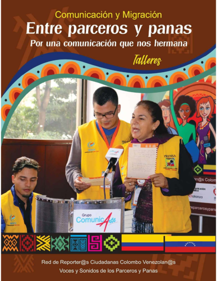 "Tenemos en nuestras manos una recopilación de pautas-técnicas y algunos tips prácticos como herramientas concretas para el uso correcto de algunos de los lenguajes mediáticos como lo son: prensa, radio, fotografía, video y plataformas digitales en el marco del tema de comunicación y movilidad humana. Este trabajo es gracias a algunos de los talleristas-facilitadores que han estado acompañando el proceso formativo de la RED de Reporteros Ciudadan@s Colombo-Venezolan@s, quienes trabajando desde una metodología participativa, característica y opción profesional del Grupo COMUNICARTE, comparten con Uds. este trabajo para facilitar la inserción, acompañamiento comunicacional a grupos de migrantes, desplazados, refugiados ... o todo grupo humano en situación de movilidad." (Presentación, página 3)