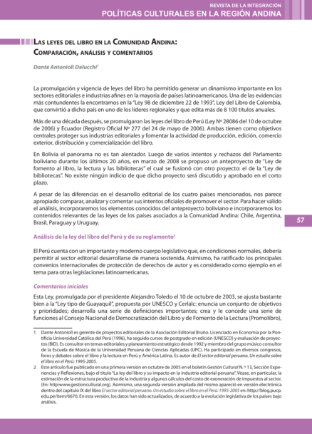 Las leyes del libro en la Comunidad Andina: Comparación, análisis y comentarios