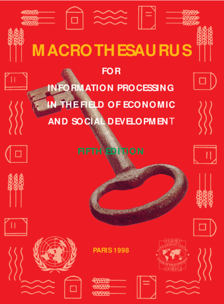 "This new edition of the Macrothesaurus for Information Processing in the field of Economic and Social Development represents a continuation of the combined efforts of many organisations over a period of almost 30 years to create a common vocabulary to facilitate the indexing, retrieval and exchange of development-related information. The Macrothesaurus comprises descriptors (keywords) designed for indexing books and documents covering the field of economic and social development. It can also be used as a search aid for documentation centres, libraries, databases and on-line networks. Efforts have been made to improve the user-friendliness and flexibility of the Macrothesaurus by increasing the number of non-descriptors (i.e. cross-references) and scope notes in this edition. The preparation of this fifth edition was guided by an Advisory Committee composed of representatives from the International Development Research Centre, Ottawa, the United Nations Department of Economic and Social Affairs, New York, the Organisation for Economic Co-operation and Development (OECD), and the OECD Development Centre, Paris." (Publisher descrition)